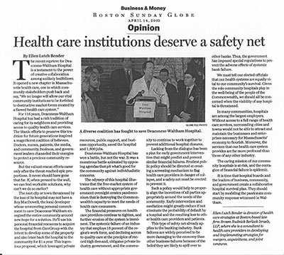 The next city or town threatened by the loss of its hospital may not have a Roy MacDowell, the local developer whose unwavering personal commitment to save Deaconess-Waltham energized the entire community around new hope for a solution. He’ll use his personal financial resources to acquire the hospital from CareGroup with the intent to develop some of the property and also lease back the hospital to the community for $1 a year. This ingenious proposal, which leveraged private resources, public support, and business opportunity, saved the hospital and 1,600 jobs.